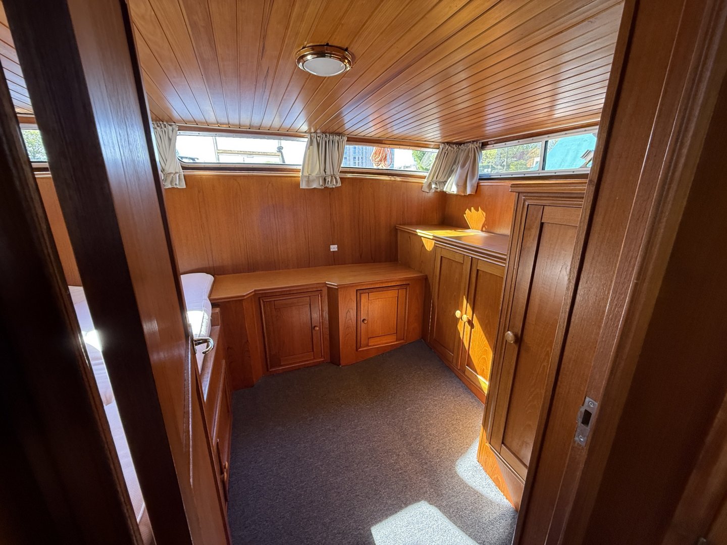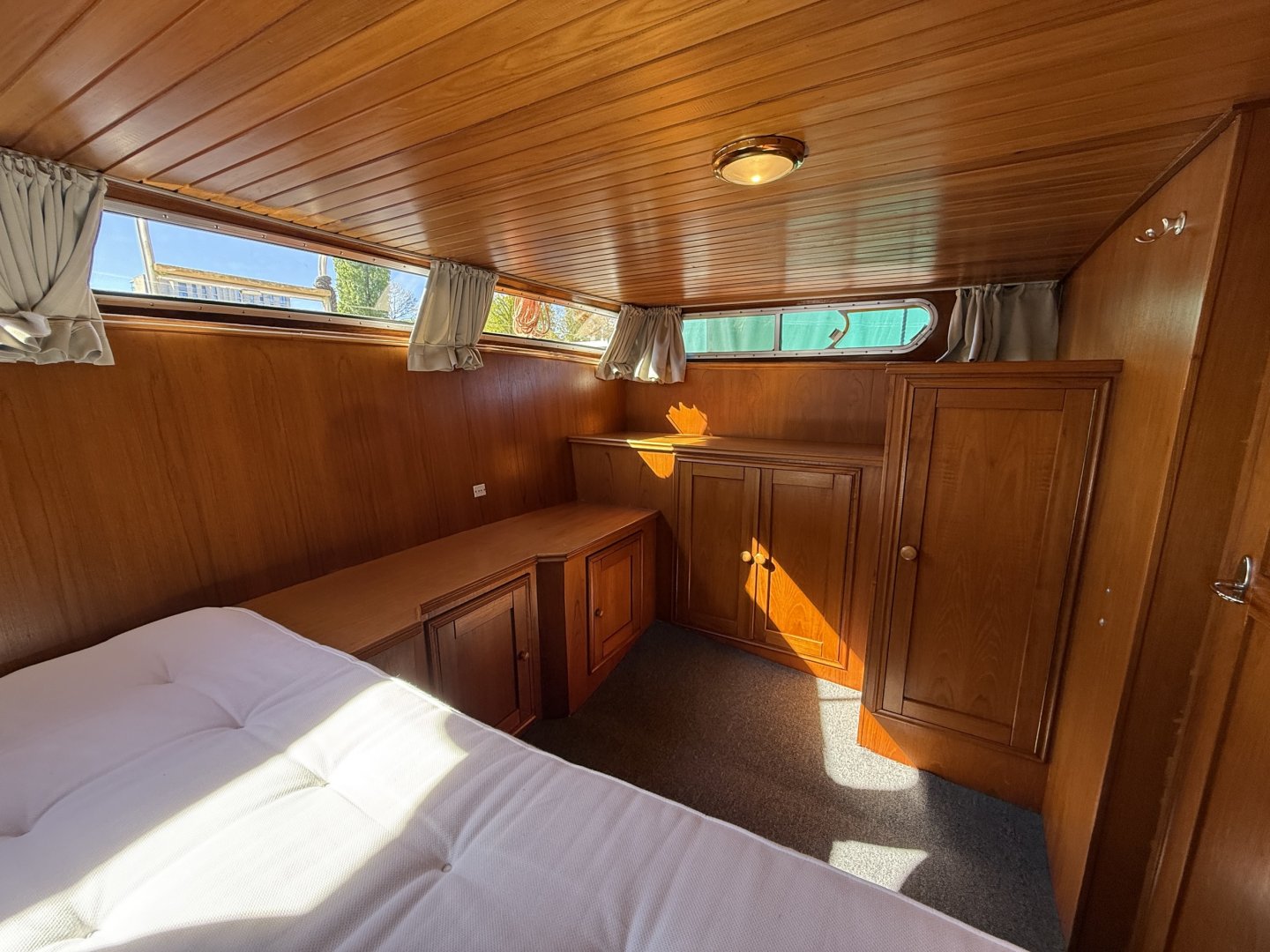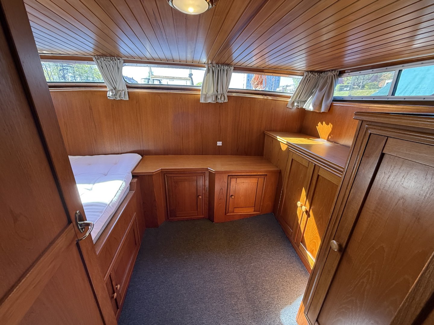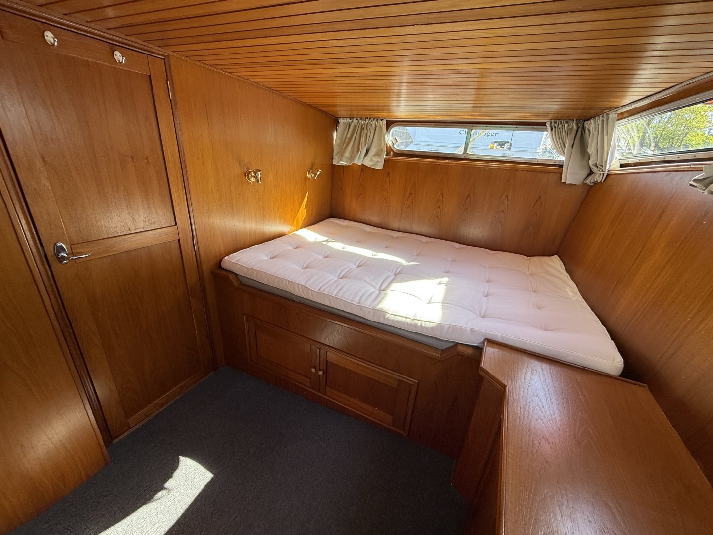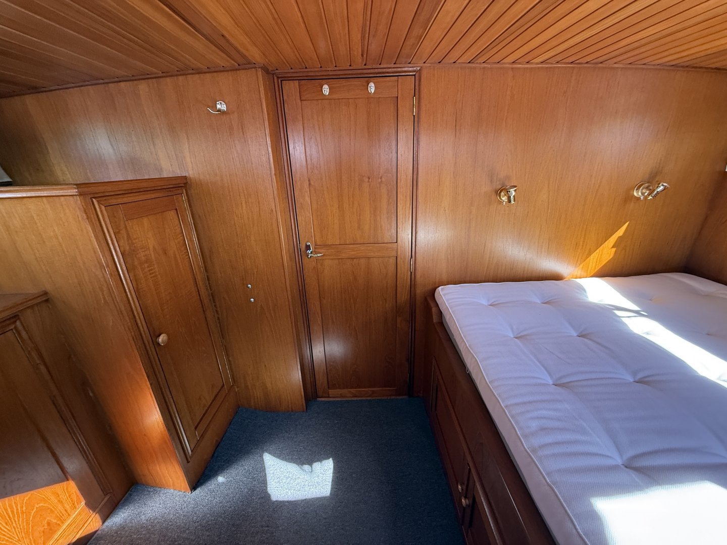 De voorhut beschikt over een royaal tweepersoonsbed. De achterhut is ingericht als volwaardige master bedroom met een groot bed, hangkast en extra bergruimte.