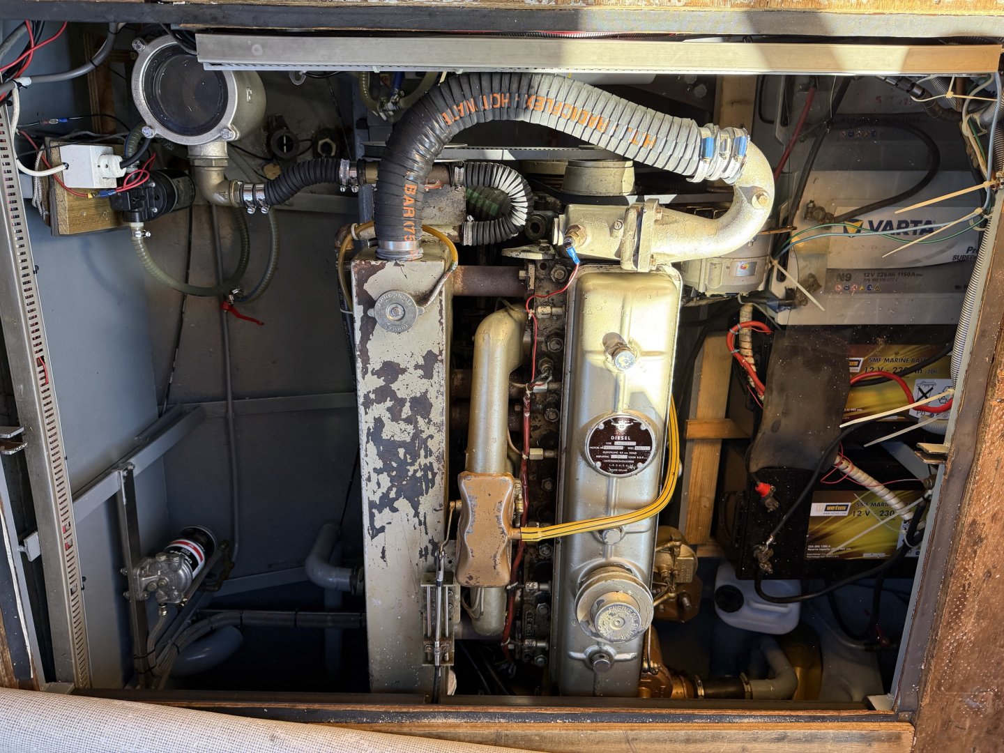Met de betrouwbare DAF 575 6 cilinder dieselmotor van 106 pk, schroefas aandrijving en een 24 volt boegschroef is het jacht prettig en eenvoudig te manoeuvreren, zowel op ruim water als in havens.